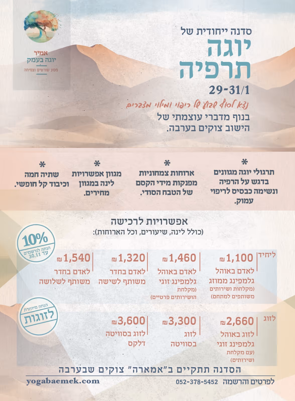 סדנה ייחודית של יוגה תרפיה בנוף מדברי עוצמתי של הישוב צוקים בערבה.